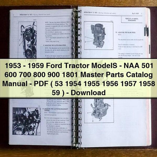 This manual covers tractors from the NAA (Golden Jubilee) and 501, 600, 700, 800, 900, and 1801 series, produced between 1953 and 1959. These tractors represent a significant era in agricultural machinery history, known for their robust engineering and reliability. This comprehensive guide is designed for owners, mechanics, parts suppliers, collectors, and restorers, providing essential information to maintain and preserve these iconic machines. The manual's detailed approach ensures that users can accurately identify and source the correct components, facilitating efficient upkeep and restoration efforts. The scope of this Master Parts Catalog Manual is extensive, detailing components for virtually every system on the tractor. Coverage includes wheels, brakes, front and rear axles, hydraulic controls, engine, transmission, cooling system, fuel system, hydraulic pump, electrical system, instrument panel, tractor seat, frame parts, sheet metal, and decals. With over 300 pages of high-quality content, including numerous pictures and diagrams, this English-language manual offers exploded views and part numbers for precise identification. It is an indispensable resource for anyone involved with these tractor models, enabling accurate parts ordering, assembly verification, and troubleshooting.