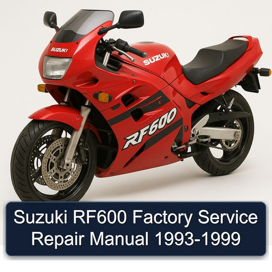 The Suzuki RF600, produced from 1993 to 1999, represents Suzuki's offering in the middleweight sportbike segment, known for its blend of performance and rider comfort. This motorcycle features a robust inline-4 cylinder, DOHC, 16-valve engine with a displacement of 599cc, delivering approximately 98-101 HP. Its engineering is characterized by a liquid-cooled system and a 6-speed transmission, designed for spirited riding. The RF600R and RF600RT variants share a steel twin-spar frame for rigidity, dual disc front brakes, and a single disc rear brake, emphasizing reliable performance and a solid foundation for its sporty capabilities. This comprehensive 433-page Factory Service Repair Manual (FSM) in English provides detailed guidance for the Suzuki RF600 motorcycle. It covers essential maintenance procedures, including oil changes, filter replacements, and chain adjustments, alongside in-depth repair instructions for all major systems such as the engine, fuel, ignition, transmission, chassis, brakes, and electrical components. The manual includes systematic troubleshooting guides, critical technical specifications like torque values and fluid capacities, and is enhanced with hundreds of photos and illustrations to aid understanding. This resource is designed for both do-it-yourself enthusiasts and professional mechanics, offering an inexpensive yet accurate source of information to maintain and repair the vehicle effectively.