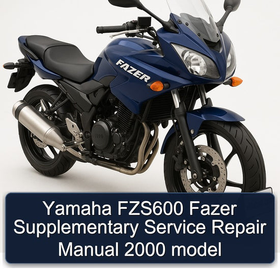 The Yamaha FZS600 Fazer, produced between 1998 and 2003, is a versatile middleweight sport-touring motorcycle recognized for its blend of performance, comfort, and practicality. Built with renowned engineering quality and reliability, this model offered a smooth inline-four engine derived from the R6, comfortable ergonomics for extended rides, and agile handling. Its design, featuring a full front fairing for wind protection, positioned it as an appealing option for riders seeking a capable machine for commuting, weekend touring, and spirited riding, competing effectively against other naked or semi-faired motorcycles of its class. This supplementary service repair manual provides essential technical data, maintenance procedures, and diagnostic information specifically for the 2000 model year Yamaha FZS600 Fazer. Its scope includes general information, detailed specifications, periodic maintenance and adjustments, chassis components, the electrical system, and wiring diagrams. The manual is designed to assist owners, mechanics, and technicians in effectively maintaining and repairing the motorcycle, covering general inspection, routine service tasks, lubrication, chassis adjustments, and basic electrical troubleshooting.