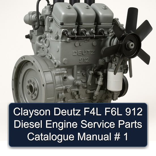 This Service Parts Catalogue manual provides comprehensive details for the Clayson Deutz F4L F6L 912 series of diesel engines. Designed for service and parts identification, this manual covers engine variants...