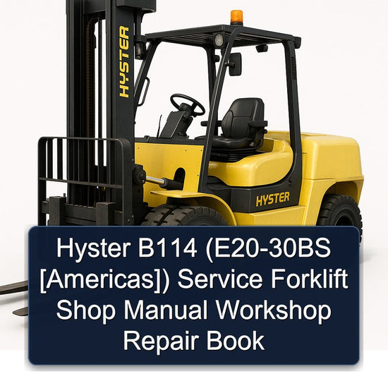 This workshop repair manual covers the Hyster B114 (E20-30BS [Americas]) counterbalanced forklift, designed for efficient material handling with lift capacities ranging from 2000 to 3000 lbs. Engineered for reliability and performance, this forklift features robust construction, including integrated fuel and hydraulic fluid tanks, and offers options for various power sources, likely including electric and internal combustion, with a specific focus on LPG fuel systems. Its advanced systems, such as the planetary gear drive axle, three-speed PS transmission, and comprehensive steering and mast configurations, are built to meet demanding operational requirements.