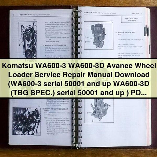 This Service Repair Manual provides comprehensive guidance for the Komatsu WA600-3 and WA600-3D Avance wheel loaders, covering serial numbers WA600-3 50001 and up, and WA600-3D (TBG SPEC.) 50001 and up. It details general information, structure and function, testing and adjusting, disassembly and assembly, maintenance standards, and other essential procedures. The manual is designed to assist owners, mechanics, and technicians in performing maintenance, troubleshooting, and repairs, ensuring the continued optimal performance and longevity of the equipment. Its clear, step-by-step instructions facilitate ease of use.