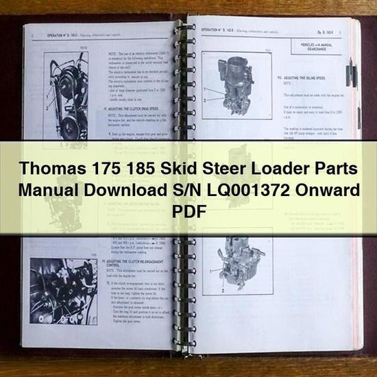 This manual covers the Thomas 175/185 Skid Steer Loader, applicable to serial numbers LQ001372 and onward. Engineered for demanding tasks, the Thomas 175/185 Skid Steer Loader is designed for reliability...
