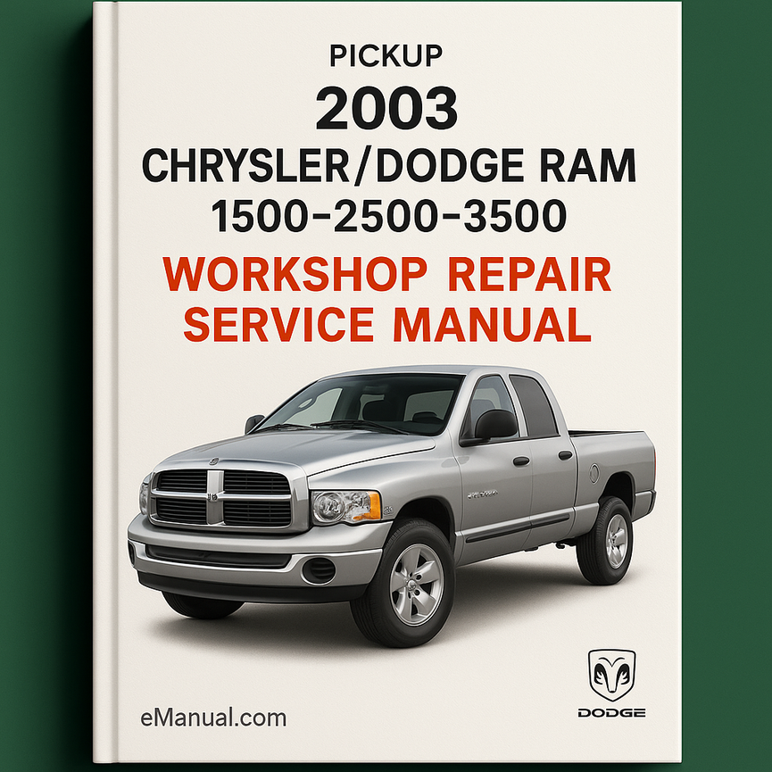 2003 Chrysler/Dodge Ram Pickup 1500-2500-3500 Workshop Repair Service Manual Best🏷️ Basic Information Identification Make: Chrysler/Dodge Model: Ram Pickup Year: 2003 Chassis Code: DR (Third Generation Ram) Body Styles Covered: Standard Cab, Extended Cab (Club Cab), Crew Cab Weight Classes: 1500, 2500, 3500 👋 Introduction Market Position Segment: Full-size pickup...