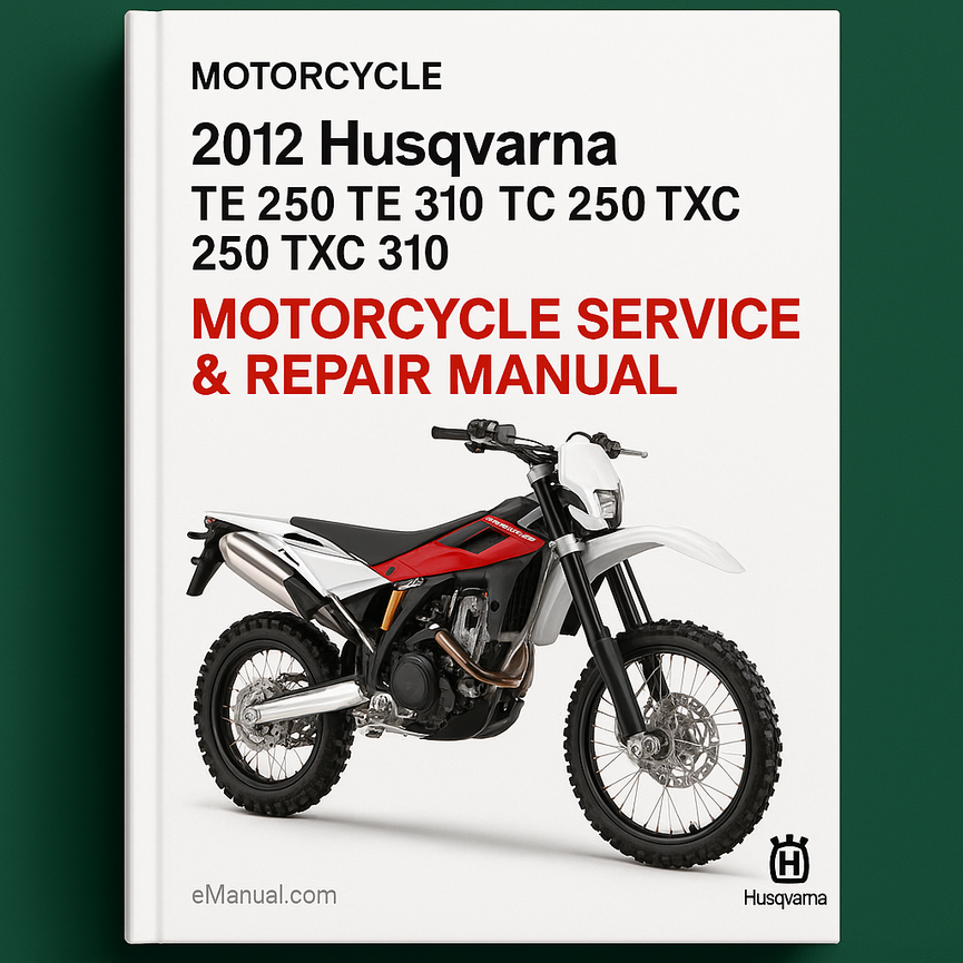 2012 Husqvarna TE 250 TE 310 TC 250 TXC 250...Dies ist das KOMPLETTE Service- und Reparaturhandbuch für die Motorräder Husqvarna TE 250, TE 310, TC 250, TXC 250, TXC 310. Produktionsmodelljahr 2012. Es umfasst die komplette Demontage und den Wiederaufbau, Bilder und Teilediagramme, Drehmomentangaben, Wartung, Fehlerbehebung usw. Dieses Handbuch...