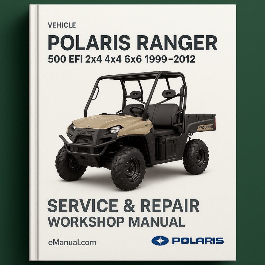 Polaris Ranger 500 EFI 2x4 4x4 6x6 1999-2012 Service Repair...Basic Information Identification Make: Polaris Model: Ranger 500 EFI Model Variants: 2x4, 4x4, 6x6 Product Type: Service Repair Workshop Manual Product Format: PDF Download Codes Chassis Codes: Not specified in product information, but typically associated with Ranger chassis designations. Engine...