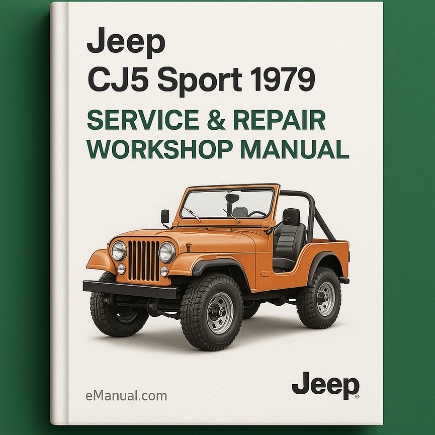 Jeep CJ5 Sport 1979 Service-Reparatur-WerkstatthandbuchJeep CJ5 Sport 1979 Service-Reparatur-Werkstatthandbuch Dies ist das Service- und Reparaturhandbuch für den Jeep CJ5 Sport 1979. Dieses Handbuch enthält umfassende Wartungs- und Reparaturanweisungen, die von Mechanikern auf der ganzen Welt verwendet werden. Alle wichtigen Themen werden vollständig behandelt. Hier...