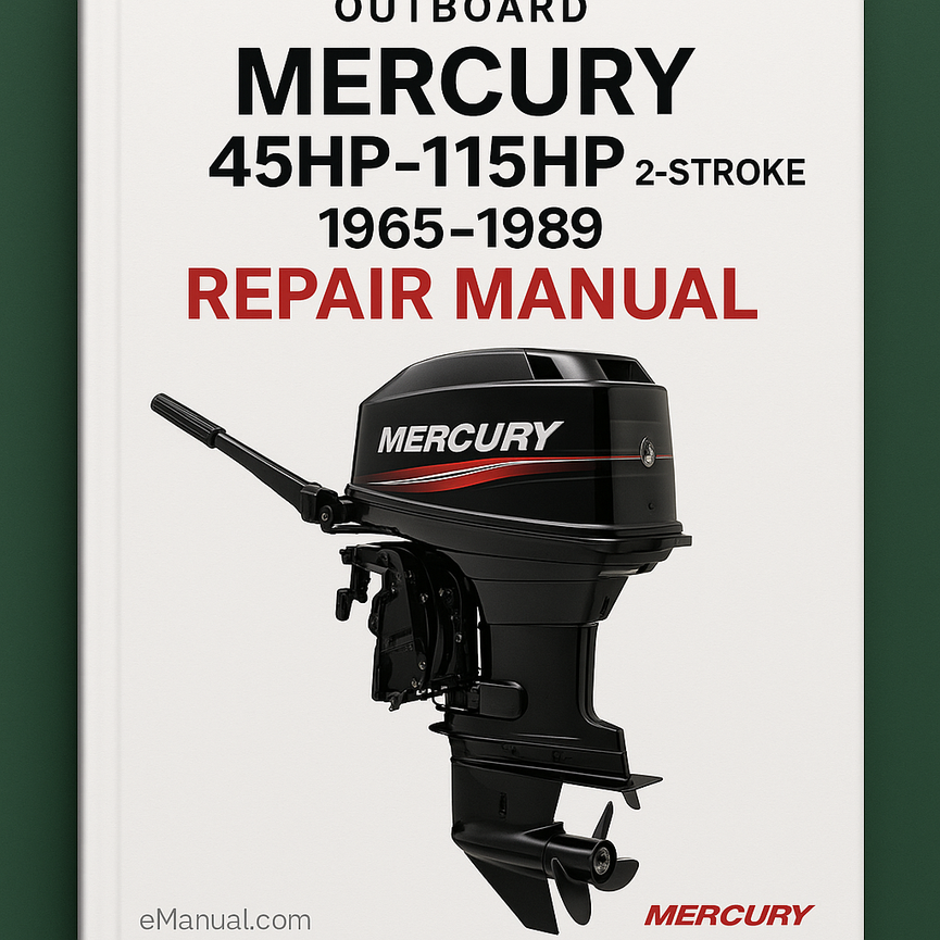 1965-1989 Mercury 45HP-115HP 2-Stroke Outboard Repair ManualThis comprehensive manual covers Mercury Outboard Motors manufactured between 1965 and 1989, encompassing a range of 2-stroke, water-cooled engines from 45HP to 115HP. It details specific models including the 45HP, 50HP, 500, 60HP, 650, 65HP, 700, 70HP, 75HP, 80HP, 800,...