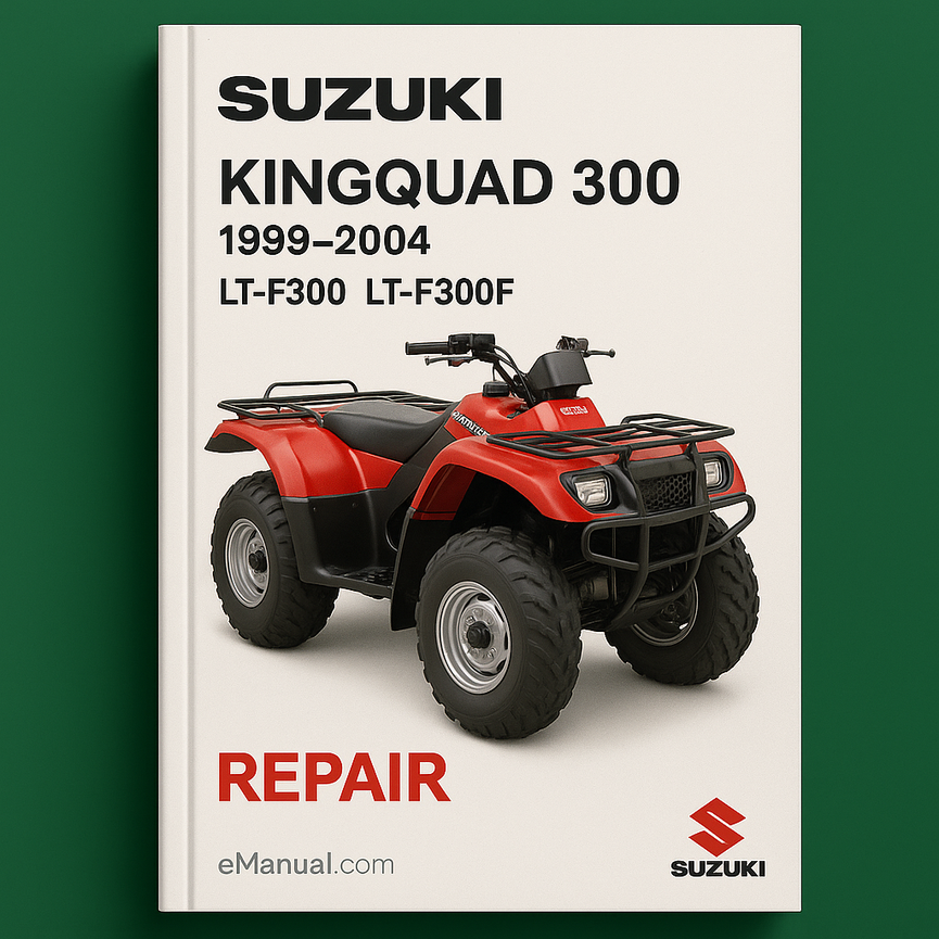 Suzuki KingQuad 300 Service Manual Repair 1999-2004 LT-F300 LT-F300F🏷️ Basic Information Identification Make: Suzuki Model: KingQuad 300 Model Codes: LT-F300, LT-F300F Applicable Years: 1999, 2000, 2001, 2002, 2003, 2004 Vehicle Type: All-Terrain Vehicle (ATV) Drivetrain Variants Covered: 2WD and 4x4 👋 Introduction Market Position Positioning: A robust and...