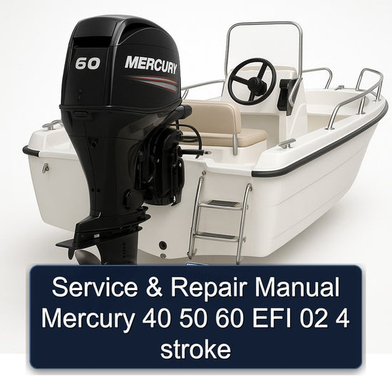 This Service & Repair Manual covers Mercury 40 EFI, 50 EFI, and 60 EFI outboard engines manufactured from 2002 onward, identified by serial numbers starting with 0T409000. These four-stroke EFI...