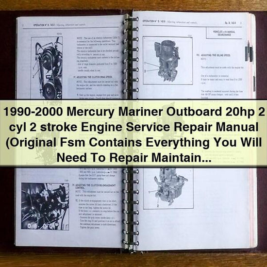 This manual covers the Mercury Mariner Outboard motor, manufactured between 1990 and 2000. Designed as a reliable 2-stroke, 2-cylinder, 20hp outboard motor, it utilizes a water-cooled system and a hand...
