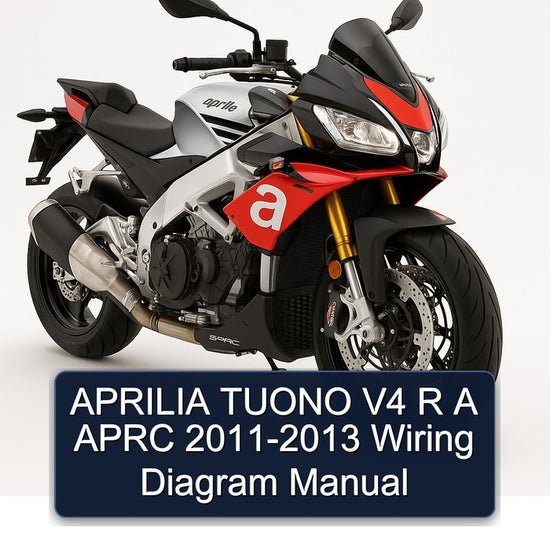 This manual covers the Tuono V4 R APRC, a hyper-naked sportbike produced between 2011 and 2013. Known for its powerful, longitudinally mounted V4 engine and advanced Performance Ride Control (APRC) electronics suite, this motorcycle offers exhilarating performance for enthusiasts. The APRC package includes Traction Control, Wheelie Control, and Launch Control, all managed through a sophisticated electronic system. Built with an aluminum twin-spar frame and featuring a 6-speed cassette-type gearbox with a Quick Shift system, the Tuono V4 R APRC is engineered for both track-day capability and dynamic street riding, reflecting a rich racing heritage. This comprehensive English wiring diagram manual provides detailed schematics for all electrical systems of the Tuono V4 R APRC. It covers essential components such as the engine management system, lighting, instrumentation, charging system, and the specific APRC system wiring. The manual includes guidance for troubleshooting electrical faults, identifying components, and performing wiring repairs. With factory-level schematic detail, it is an invaluable resource for owners, mechanics, and technicians seeking to maintain, diagnose, and repair the electrical aspects of this performance motorcycle. The format is fully printable for convenient use.