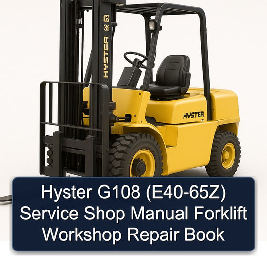 This comprehensive Service Shop Manual provides detailed information for the maintenance and repair of the Hyster G108 (E40-65Z) forklift. It covers a wide range of systems, including the internal combustion engine, transmission, hydraulic system, electrical components, brake system, steering system, and cooling system. Additionally, the manual offers guidance on periodic maintenance, troubleshooting procedures, technical specifications, fastener standards, and the operation of specialized attachments. With detailed illustrations and clear instructions, this manual serves as an indispensable resource for owners, mechanics, and technicians.