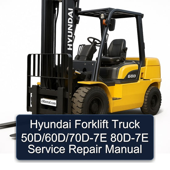 This service repair manual covers the Hyundai Forklift Truck models 50D-7E, 60D-7E, 70D-7E, and 80D-7E. These heavy-duty diesel forklifts, manufactured by Hyundai Heavy Industries, are designed for industrial material handling...