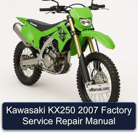 This comprehensive Factory Service Repair Manual provides essential guidance for the repair and adjustment of the 2007 KX250. It is intended for mechanics and DIY individuals seeking detailed information on all major systems, including the engine, transmission, suspension, brakes, fuel, and cooling systems. The manual offers step-by-step procedures for disassembly, assembly, repair, and checks, along with troubleshooting advice and technical specifications, ensuring owners and technicians can effectively maintain and restore the motorcycle to optimal working condition.