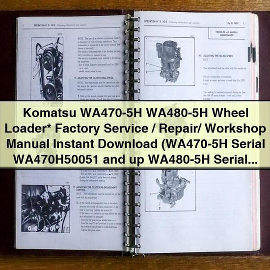 This manual covers the Komatsu WA470-5H and WA480-5H Wheel Loaders, designed for robust performance in demanding work environments. These machines are engineered for reliability and efficiency, offering powerful operation and...
