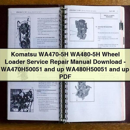 This service repair manual covers Komatsu wheel loaders, models WA470-5H and WA480-5H, for serial numbers WA470H50051 and up, and WA480H50051 and up. These robust machines are engineered for demanding work...
