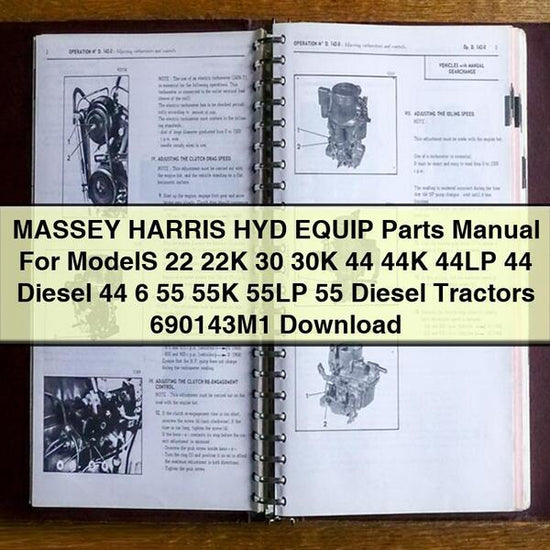 MASSEY HARRIS HYD EQUIP Parts Manual For ModelS 22 22K 30 30K 44 44K 44LP 44 Diesel 44 6 55 55K 55LP 55 Diesel Tractors 690143M1