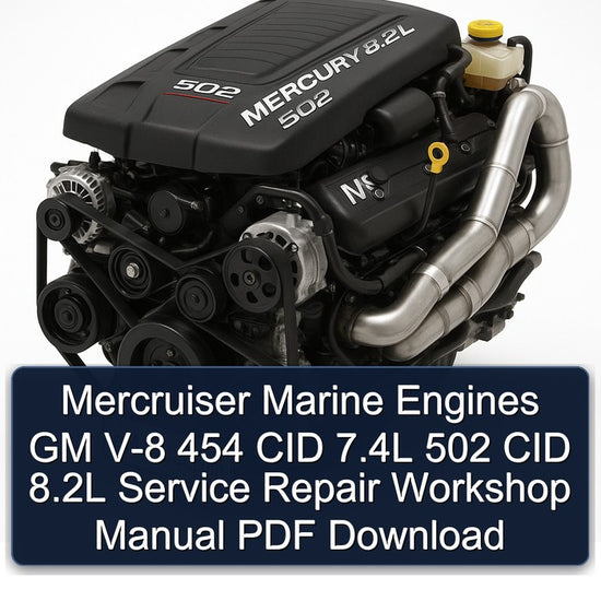 This Service Repair Workshop Manual covers Mercruiser GM V-8 Marine Engines, specifically the Gen. VI and L-29 generations. These engines, available in 454 CID (7.4 Liters) and 502 CID (8.2...