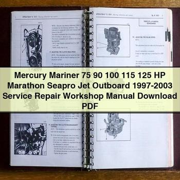 This manual covers the Mercury Mariner Marathon Seapro Jet Outboard models manufactured between 1997 and 2003. These robust 2-stroke outboard engines, available in 75, 90, 100, 115, and 125 horsepower...