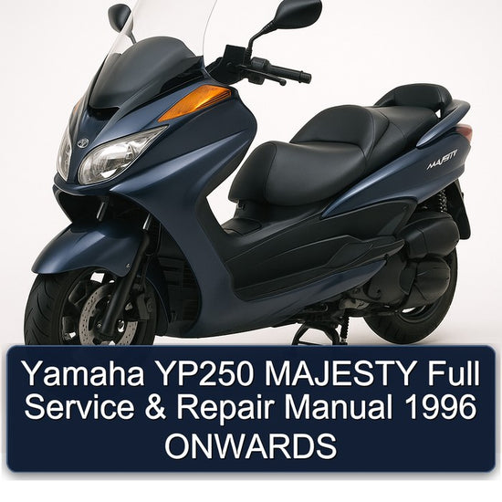 The YP250 Majesty, also known by its model code YP250, is a premium 250cc scooter introduced from 1996 onwards. Engineered by a manufacturer renowned for its quality and innovation, the Majesty is designed for both urban commuting and comfortable inter-urban travel. It offers a blend of performance, practicality, and comfort, making it a strong contender in its segment, often compared to models like the Honda Forza 250 and Suzuki Burgman 250. Key features include a liquid-cooled, 4-stroke engine delivering approximately 20-22 HP, an automatic V-belt transmission (CVT), and ample under-seat storage. Its robust engineering ensures reliability for daily use and longer journeys. This comprehensive Factory Service Repair Workshop Manual provides all necessary procedures for maintaining and repairing YP250 Majesty models from 1996 onwards. Covering hundreds of pages in English, it details engine overhauls, fuel and ignition system servicing, cooling system maintenance, transmission repairs, chassis and suspension work, brake system servicing, and electrical system diagnostics. The manual includes step-by-step repair instructions, troubleshooting guides, and hundreds of detailed photos and exploded diagrams. It is an indispensable resource for owners and professional technicians seeking to ensure the optimal performance and longevity of their Majesty scooter, enabling them to conduct all required maintenance and repairs efficiently.