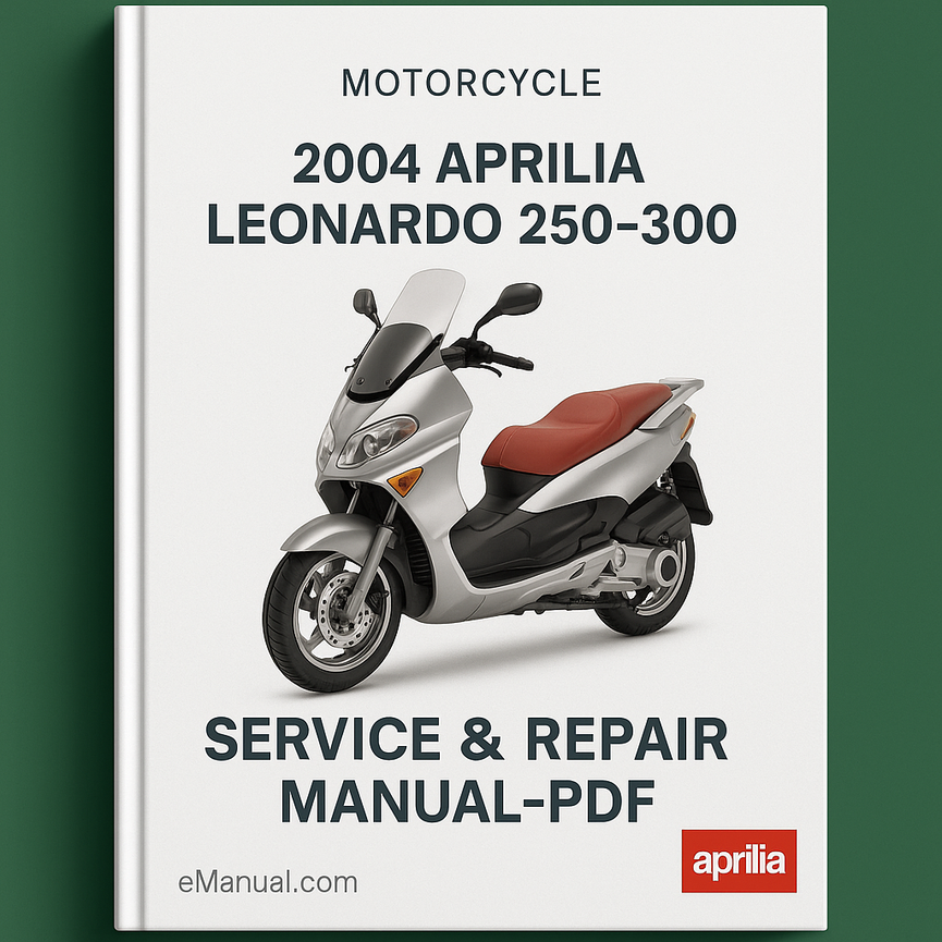 Manual de servicio y reparación de motocicletas APRILIA LEONARDO 250-300...🏷️ Basic Information Identification Make: Aprilia Model: Leonardo Year: 2004 Engine Displacement: 250cc and 300cc variants Codes Product Code: Not specified, assumed digital delivery 👋 Introduction Market Position Segment: Maxi-scooter segment Target Demographic: Commuters, urban riders seeking comfort and performance...