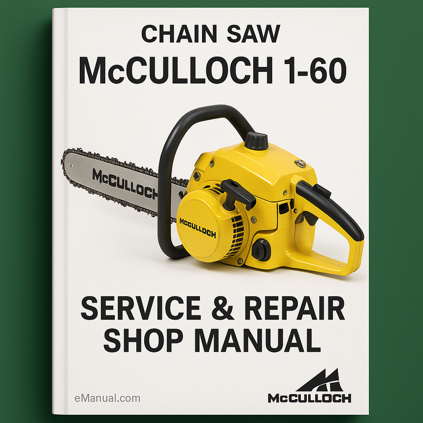 McCulloch 1-60 Chain Saw Service Repair Shop Manual 127pMcCulloch 1-60 Chain Saw Service, Repair, Shop Manual 127p You are purchasing a digital download of the McCulloch 1-60 Chain Saw Shop Manual. This is the same McCulloch Shop manual that McCulloch Certified Mechanics used to repair your saw. The...
