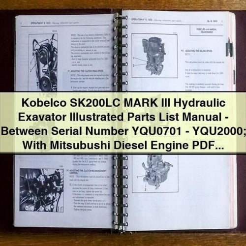 Kobelco SK200LC MARK III Hydraulic Exavator Illustrated Parts List Manual...Kobelco Hydraulic Excavator Illustrated Parts List Manual for Kobelco Model SK200LC MARK III Hydraulic Exavators Between Serial Number YQU0701 - YQU2000. This illustrated parts catalog book contains detailed parts explosions, and exploded views, breakdowns of all part numbers for all...