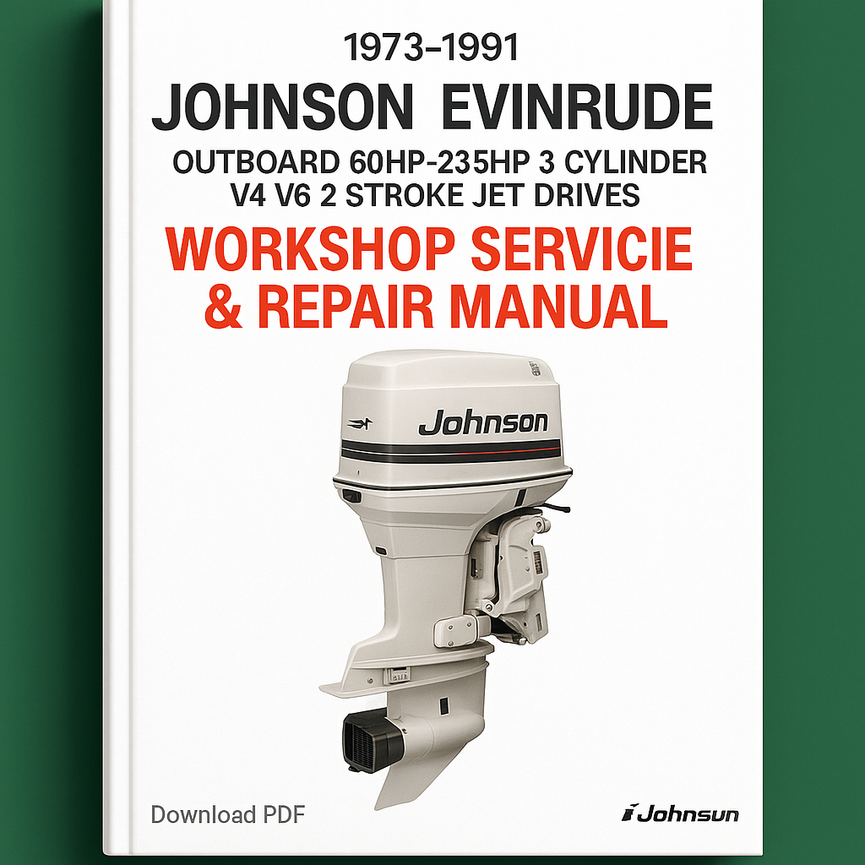 1973-1991 Johnson Evinrude Outboard 60HP-235HP 3 Cylinder V4 V6 2...🏷️ Basic Information Identification Make: Johnson Evinrude Model: Outboard Motors Years Covered: 1973-1991 Engine Configurations Covered: 3 Cylinder, V4, V6 Engine Technology: 2-Stroke Features Target Audience: Do-It-Yourselfer Usage Purpose: Service and Repair 📋 Manual Details Manual Information Manual Type: Workshop...