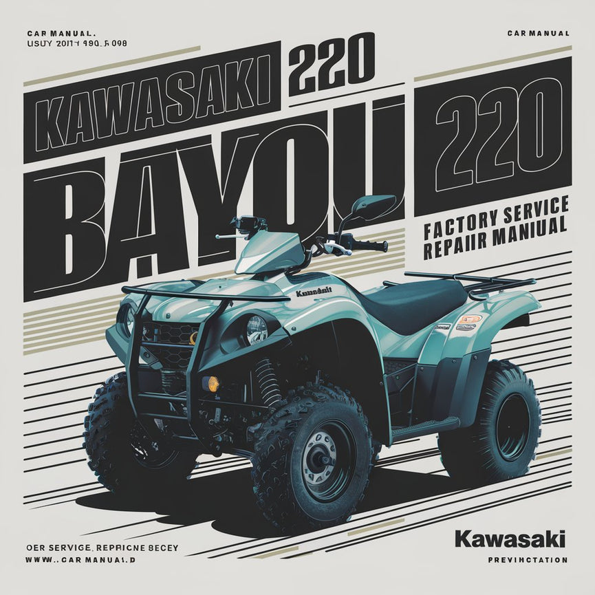 Kawasaki KLF220-A4 Bayou 1991 Workshop Repair Service ManualKawasaki KLF220-A4 Bayou 1991 Workshop Repair Service Manual PDF Download This professional technical manual contains service, maintenance, and troubleshooting information for your Kawasaki KLF220-A4 Bayou 1991, covering All Models/Engines/Trim/Transmissions Types.This top quality Kawasaki KLF220-A4 Bayou 1991 Workshop Repair Service manual...