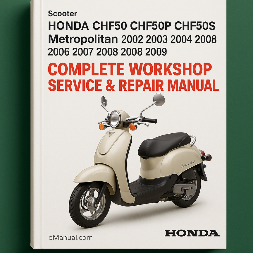 Manual completo de reparación y servicio de taller del scooter...Manual completo de reparación y servicio de taller del scooter Metropolitan Honda CHF50 CHF50P CHF50S 2002 2003 2004 2005 2006 2007 2008 2009 Gracias por tomarse el tiempo de mirar este Manual de taller de reparación de servicio completo. Este...