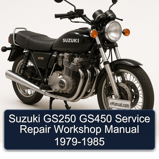 This manual covers the GS250 and GS450 motorcycle models produced between 1979 and 1985. These versatile motorcycles were recognized for their blend of practical commuting capabilities and enjoyable riding performance, competing effectively in their market segment during the late 1970s and early 1980s. Built with a reputation for engineering quality and reliability, the GS250 and GS450 offered riders a dependable experience, making them a popular choice for both daily use and recreational journeys. This comprehensive workshop repair manual provides factory-level, highly detailed instructions for all aspects of service, repair, and maintenance for the GS250 and GS450. It covers a vast range of systems, including engine overhaul, fuel and ignition systems, transmission, drivetrain, suspension, braking, and electrical systems. The manual is designed to assist dealership technicians, professional mechanics, and DIY enthusiasts by offering clear, step-by-step procedures, diagnostic guides, and essential technical specifications, ensuring accurate and efficient upkeep of these classic motorcycles.