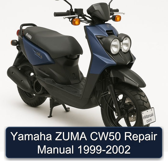 This comprehensive service repair manual provides in-depth technical information for the Yamaha ZUMA CW50 (CW50 chassis code) for the 1999 through 2002 model years. It covers all essential aspects of maintenance, repair, and troubleshooting, including detailed procedures for the engine, powertrain, chassis, suspension, brakes, and electrical systems. With step-by-step instructions, clear diagrams, and electrical schematics, this manual is an indispensable resource for owners and technicians. It empowers users to perform routine maintenance, diagnose and resolve issues, and ensure the optimal performance and longevity of their ZUMA CW50 scooter.