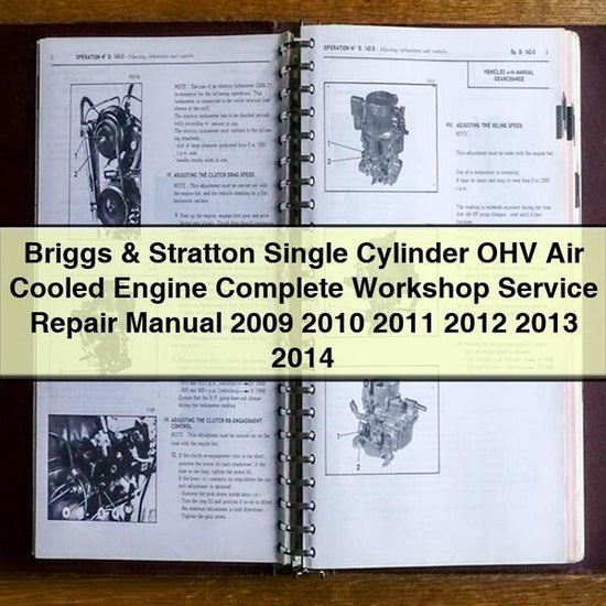 This workshop service repair manual covers Briggs & Stratton Single Cylinder OHV Air Cooled Engines manufactured between 2009 and 2014. These engines are known for their robust design and reliable...