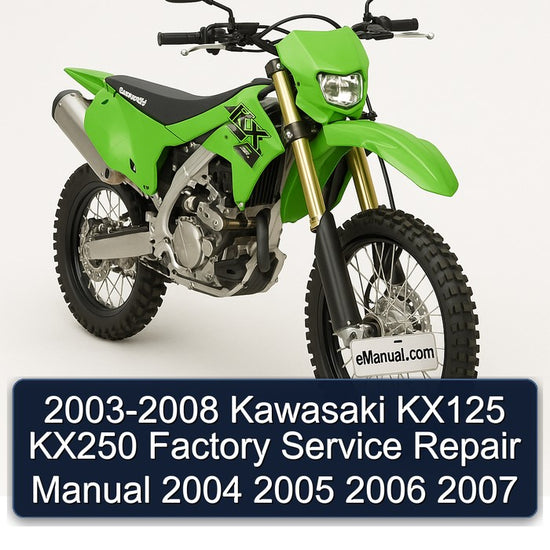 Kawasaki KX125 (2003-2008), Kawasaki KX250 (2003-2007), with the understanding that the 2007 KX250 used a 2-stroke engine, whereas the KX250F transitioned to 4-stroke in earlier years, this manual specifically covers the 2-stroke KX250 model within the stated year range.