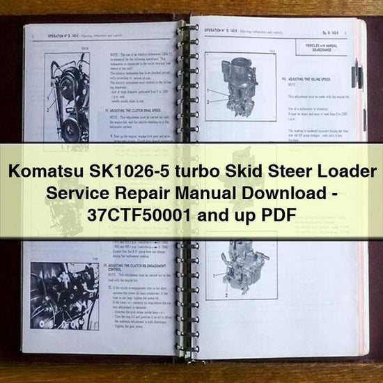 This Service Repair Manual provides comprehensive information for the Komatsu SK1026-5 turbo Skid Steer Loader, serial numbers 37CTF50001 and up. Engineered for reliability and performance, this turbocharged model is designed...