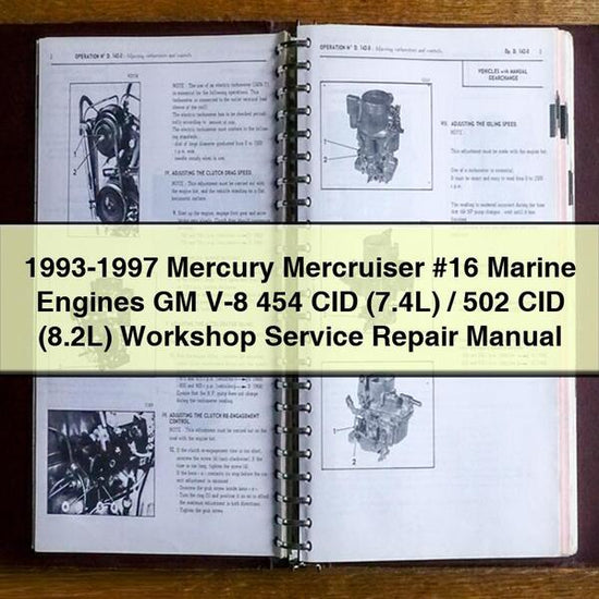 This workshop service repair manual covers Mercury Mercruiser Marine Engines GM V-8 models manufactured between 1993 and 1997. These marine engines are engineered for reliable marine propulsion and feature robust construction. This manual focuses on the 7.4L (454 CID) and 8.2L (502 CID) gasoline-powered V-8 engine configurations, designed to provide dependable power for a variety of marine applications.