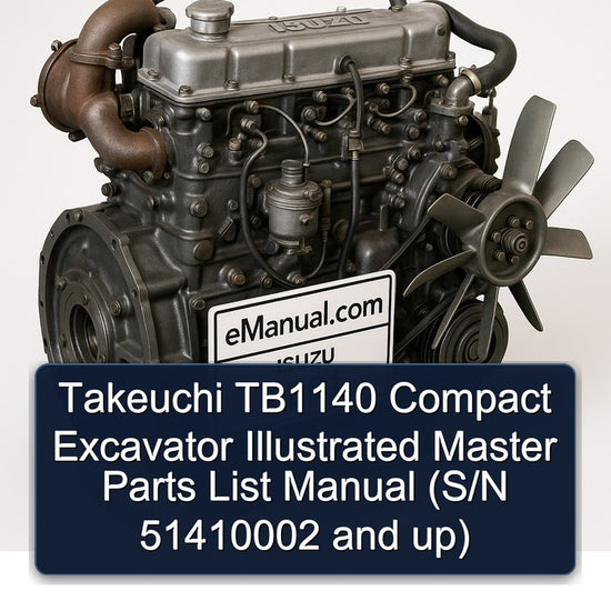 The Takeuchi TB1140 Compact Excavator, designed for demanding construction and excavation tasks, offers robust performance and operational efficiency. This model, covering serial numbers 51410002 and up, features a powerful Isuzu...