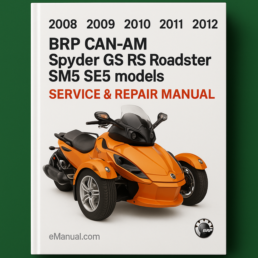 2008 2009 2010 2011 2012 BRP CAN-AM Spyder GS RS...This Manual pdf file covers all models of the following BRP CAN-AM Spyder Models: 2008 2009 2010 2011 2012 Can Am Spyder GS Roadster SM5 and SE5 2008 2009 2010 2011 2012 Can Am Spyder RS Roadster SM5 and SE5...