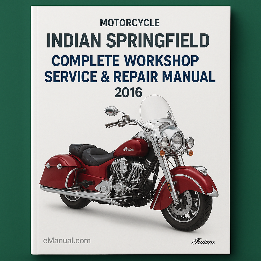 Indian Springfield Motorcycle Complete Workshop Service Repair Manual 2016🏷️ Basic Information Identification Make: Indian Motorcycle Model: Springfield Year: 2016 Codes Vehicle Platform Code: N/A (proprietary platform) 👋 Introduction Market Position Motorcycle Segment: Full-size touring cruiser with classic styling and modern amenities. Competitive Analysis Primary Competitors: Harley-Davidson Heritage Softail,...