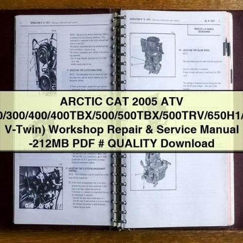ARCTIC CAT 2005 ATV (200/300/400/400TBX/500/500TBX/500TRV/650H1/650 V-Twin) Workshop Repair & Service...This manual covers the 2005 ATV lineup, encompassing a diverse range of models including the 200cc, 300cc, 400, 400TBX, 500, 500TBX, 500TRV, 650 H1, and 650 V-Twin. , a manufacturer renowned for its off-road and snowmobile products, designed these ATVs...