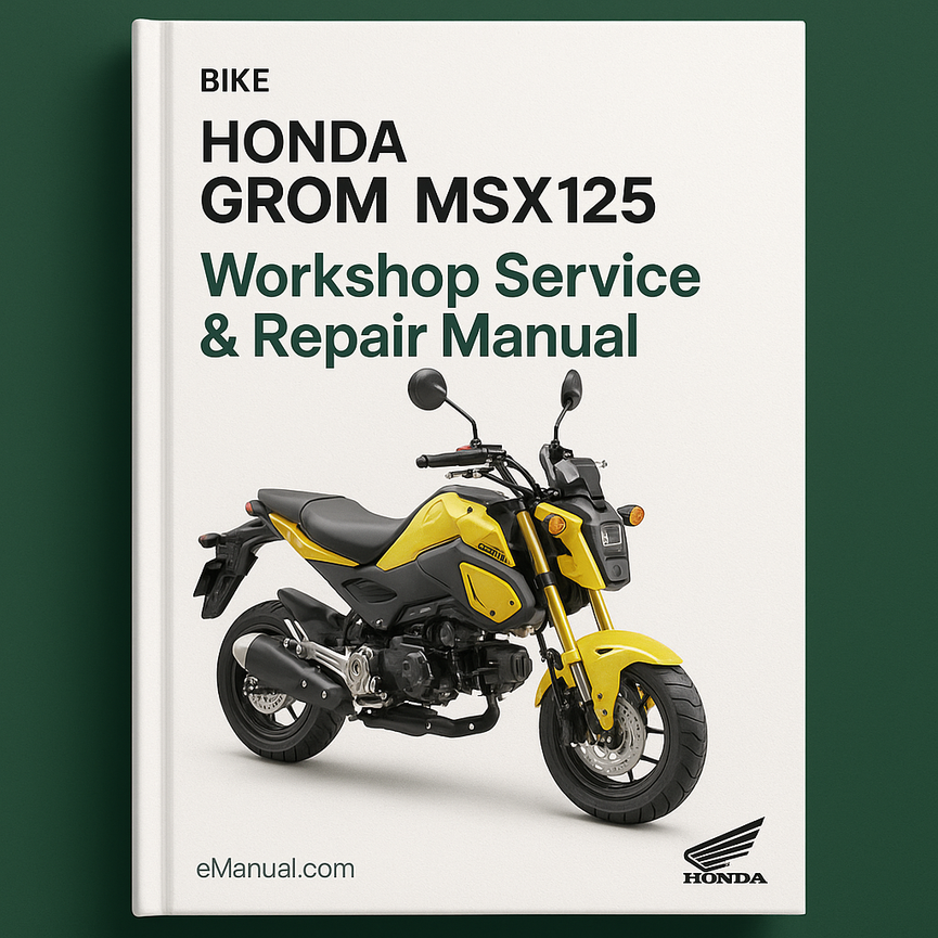 HONDA GROM MSX125 BIKE Workshop Service Repair Manual🏷️ Basic Information Identification Make: Honda Model: Grom MSX125 Vehicle Type: Mini Motorcycle Common Name: Grom Generation Current Generation Start Year: 2013 Codes Chassis Code Prefix: JC61 (varies by region and year) 👋 Introduction Market Position Segment: Lightweight / Compact...