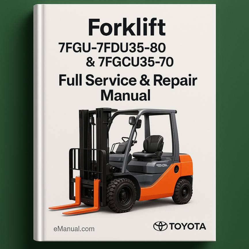 Toyota Forklift 7FGU-7FDU35-80 & 7FGCU35-70 Forklift Full Service & Repair...This manual covers the forklifts renowned for their robust engineering and reliability in demanding industrial environments. These versatile machines are designed for a wide range of material handling applications, offering efficient operation and durability. With various configurations and lifting capacities,...