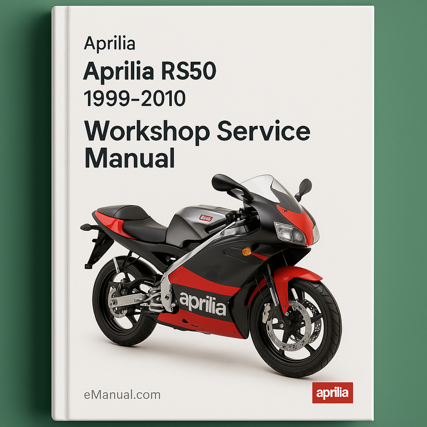 Aprilia RS50 1999-2010 Workshop Service Manual for Repair🏷️ Basic Information Identification Make: Aprilia Model: RS50 Model Code: AP06 Production Years: 1999-2010 Vehicle Type: Sport Motorcycle Segment: Lightweight Sportbike (50cc Class) 👋 Introduction Market Position Target Audience: Enthusiasts and owners seeking to perform their own maintenance and repairs...