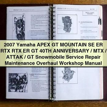 2007 Yamaha APEX GT/MountAIN/SE/ER/RTX/RTX ER/GT 40TH ANNIVERSARY/MTX/ATTAK/GT Snowmobile Service Repair...2007 Yamaha APEX GT / MOUNTAIN / SE / ER / RTX / RTX ER / GT 40TH ANNIVERSARY / MTX / ATTAK / GT Snowmobile Service Manual. The procedures in this manual are organized in a sequential, step-by-step format....