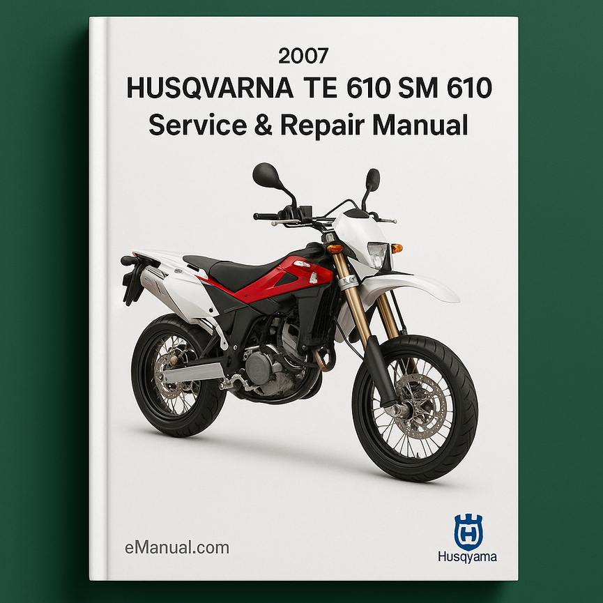 2007 HUSQVARNA TE 610 SM 610 Service Repair Manual🏷️ Basic Information Identification Make: Husqvarna Model: TE 610 SM 610 Year: 2007 Application Variants: USA/CDN-AUS models Vehicle Type: Dual-Sport/Supermoto Motorcycle 👋 Introduction Market Position Target Audience: Do-it-yourself enthusiasts and experienced mechanics. Value Proposition Cost Effectiveness: Inexpensive way to keep...