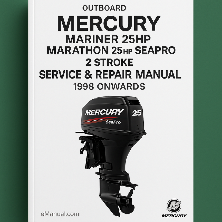Mercury Mariner Outboard 25hp Marathon 25hp Seapro 2 Stroke Service...🏷️ Basic Information Identification Make: Mercury Mariner Model: Outboard Series: Marathon / SeaPro Year From: 1998 Year To: Current 📋 Manual Details Content Manual Type: Service Repair Workshop Manual Language: English Delivery Format: PDF Download Delivery Method: Instant Download Compatibility...