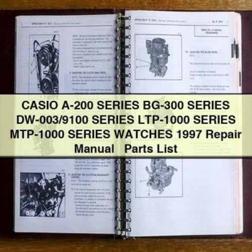 CASIO A-200 Series BG-300 Series DW-003/9100 Series LTP-1000 Series MTP-1000...🏷️ Basic Information Identification Make: Casio Model: A-200 Series / BG-300 Series / DW-003/9100 Series / LTP-1000 Series / MTP-1000 Series Year: 1997 Generation: N/A (specific generation not applicable for watches) 📋 Manual Details Description Manual Type: Repair Manual +...
