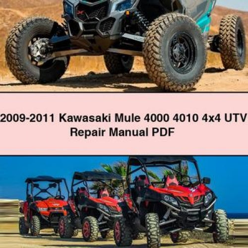 2009-2011 Kawasaki Mule 4000 4010 4x4 UTV Repair Manual🏷️ Basic Information Identification Make: Kawasaki Model: Mule 4000 / 4010 Year: 2009, 2010, 2011 Model Code: KAF620 Vehicle Type: Utility Task Vehicle (UTV) Drivetrain: 4x4 📋 Manual Details Publication Manual Type: Factory Service / Repair Manual Format: PDF Download...