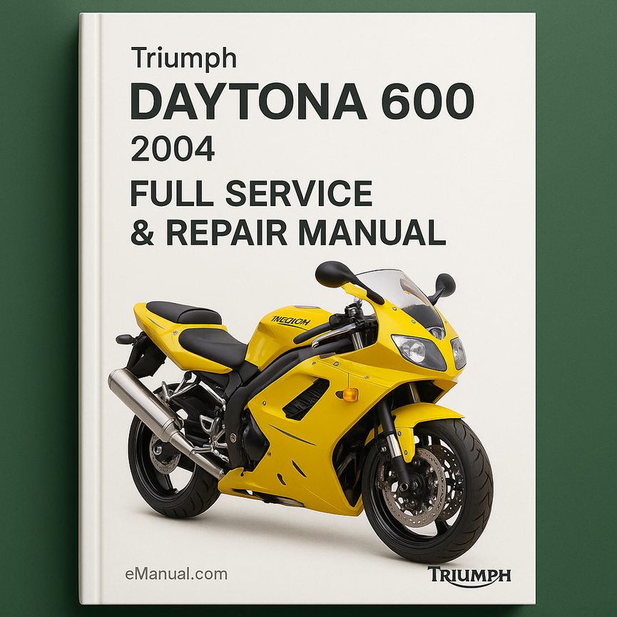 Triumph Daytona 600 2004 Full Service Repair Manual🏷️ Basic Information Identification Make: Triumph Model: Daytona 600 Year: 2004 Codes Vin Decoder Prefix: Due to the nature of motorcycle VINs, a universal prefix is not applicable. Specific VIN structures for Triumph motorcycles of this era would need to...
